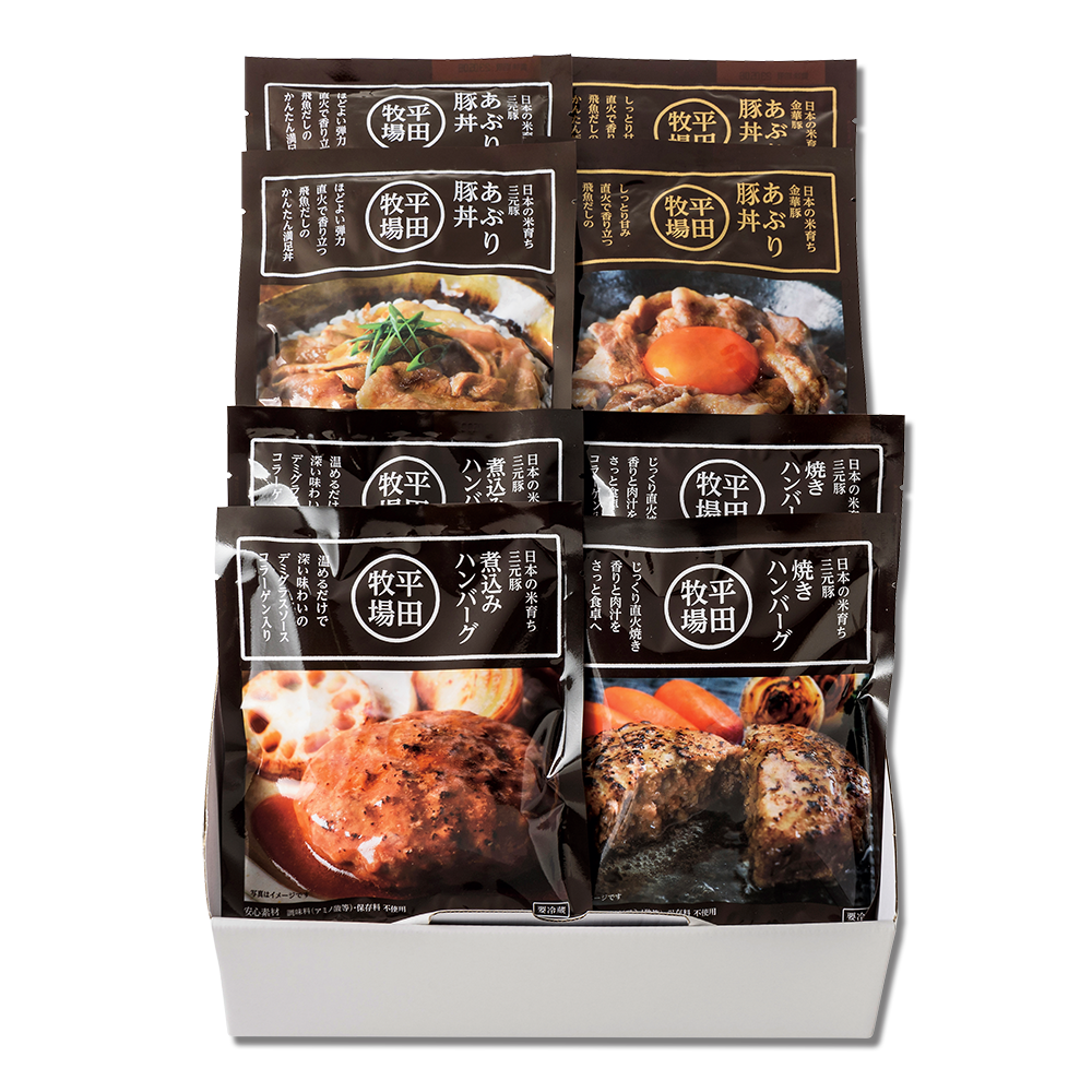 NO.388 日本の米育ち三元豚 調理済みハンバーグ&豚丼ギフト5枚入〈CNS25-9〉 ツイートする シェアする 販売価格: 5,616円(税込み) 会員価格 (税込み) 通常価格 (税込み) 在庫 商品コード 1388 JANコード 数量 - + カートに入れる お気に入りリストへ追加する カテゴリー 平田牧場特選ギフト 個別送料 390円 販売期間 ~2025/12/18 発送時期:11月中旬~12月下旬頃まで お申込み・ご入金確認後12営業日以内を目安に発送致します。